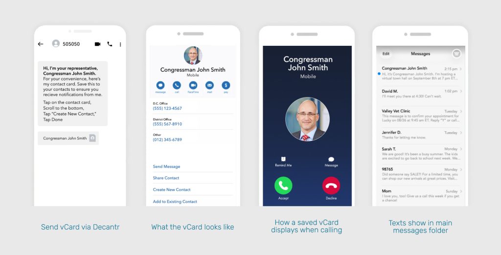 A vCard allows voters to save your campaign’s phone number directly into their contacts. When your campaign calls or texts later, your name appears on the screen rather than just a phone number.